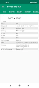 Device Info HW+ is a program for obtaining data about the operation of your mobile device with a convenient interface and management. This application will allow you to find out information about all the important elements of a smartphone or tablet, including the processor, the amount of memory, the characteristics of cameras, battery, power consumption and much more. The information obtained will allow the user to fully configure the device for performing any task, and will also help to eliminate various problems during operation.